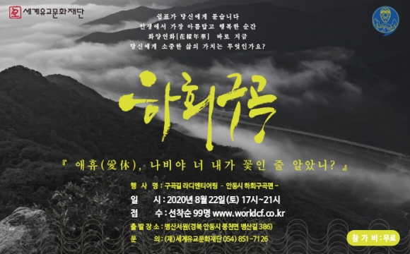 8월 22일 안동 하회구곡 시작으로, 10월 31일 영주 죽계구곡까지 6회 진행