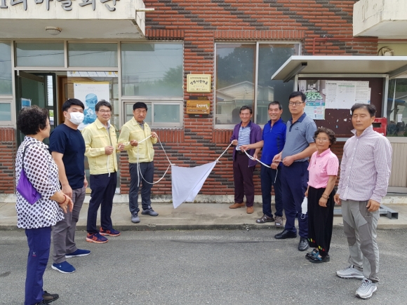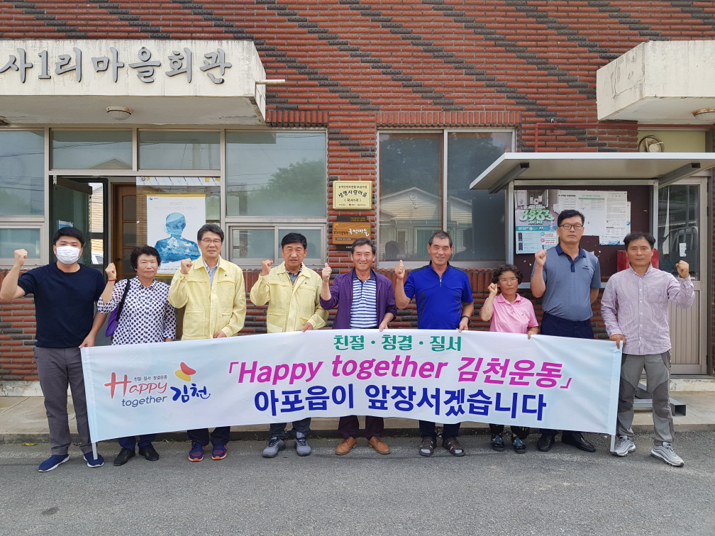 | 아포읍(읍장 이정하)에서는 8월 5일 아포읍 국사1리 마을회관에서 마을이장 및 주민들이 참여한 가운데 ⌜소각산불없는 녹색마을 만들기⌟ 캠페인 현판식을 실시했다.