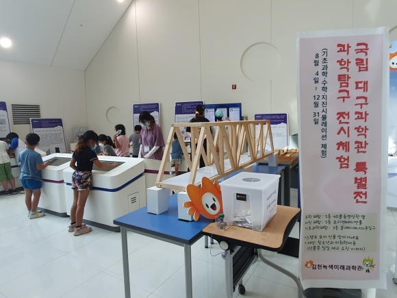 | 김천시 녹색미래과학관에서 국립대구과학관 전시콘텐츠 특별 교류전이 8월 4일부터 12월 20일까지 열린다.