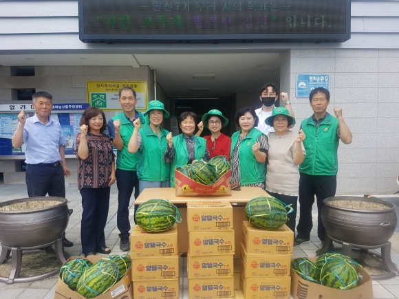 신광식, 김이경 회장을 비롯한 회원들은 “올해 유난히 장마가 길고 비도 많이 와서 어르신들이 생활하기 많이 지치고 힘드셨을 것 같다. 수박과 국수 면을 준비했는데 맛있게 드시고 힘내서 올 여름 무탈하게 보내시길 바란다.”고 전했다.