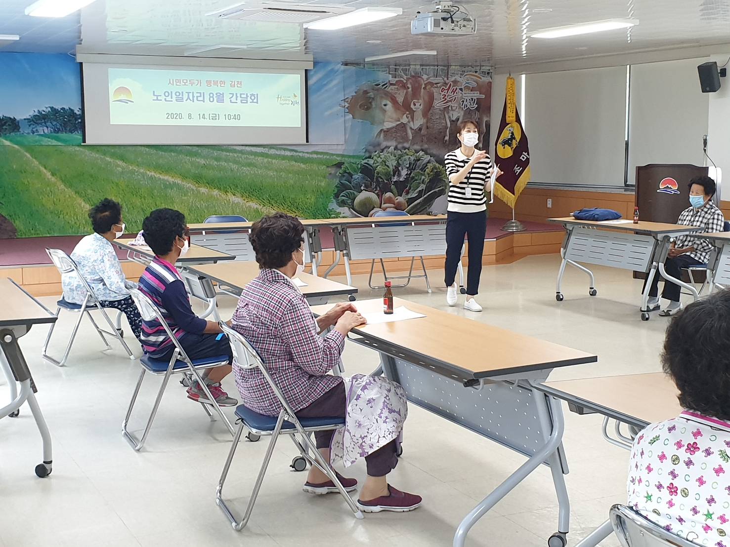 | 김천시 조마면(면장 위성충)은 7월 14일(금) 조마면사무소 2층 회의실에서 김천(조마면)시니어클럽 간담회를 개최하였다. 이 날 간담회에서는 김천시니어클럽(관장 이동근) 조마면 지역사회환경개선봉사자 10명을 대상으로 업무 담당자(최진희)의 주재 하에 ▲코로나19 개인위생 관리 안내 ▲여름철 올바른 건강관리 안내 ▲작업 시 안전 유의사항 안내 ▲근무 환경 건의사항 수렴 순으로 진행되었다.