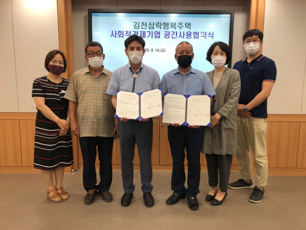 |  | | | ⓒ 김천내일신문 | | 김천시는 지난 8월14일 김천시 사회적경제기업협회(회장 윤광혁)와 김천삼락 행복주택 사회적기업 공간 사용을 위한 협약을 체결했다.