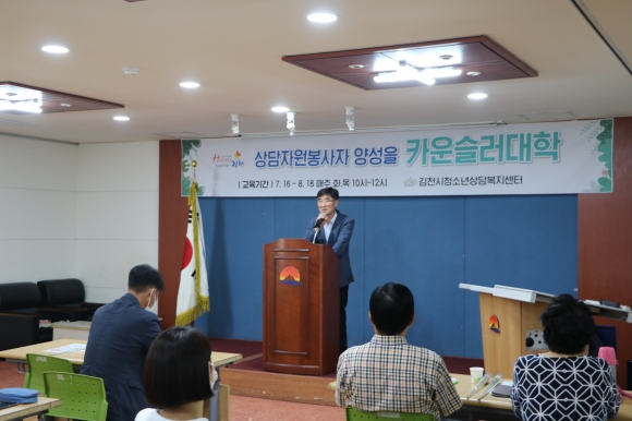 | 김천시(시장 김충섭)에서는 8월 18일 오전 10시 김천시청소년문화의집 2층 다목적홀에서 수료자 등 30명이 참석한 가운데 청소년 상담자원봉사자 양성을 위한 「2020 카운슬러대학」수료식을 실시하였다.