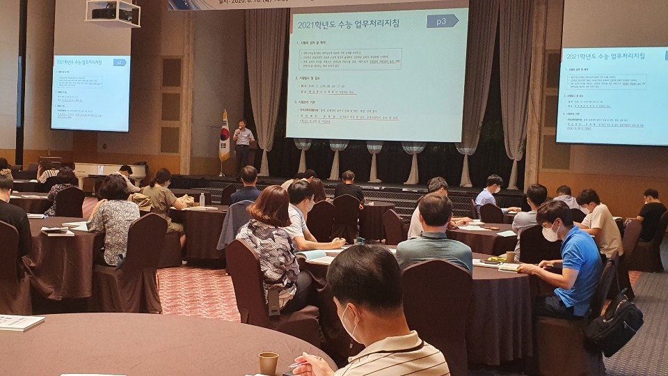 코로나19로 인한 수능시험 일정연기와 방역에 대한 대책 등으로 지난해에 비해 다소 늦은 이번 설명회는 사회적 거리두기를 위해 지난 18일 서부권(김천, 안동, 구미, 영주, 상주시험지구 소속 학교)과 20일 동부권(포항, 경주, 경산시험지구 소속 학교)으로 나눠 2회 실시한다.