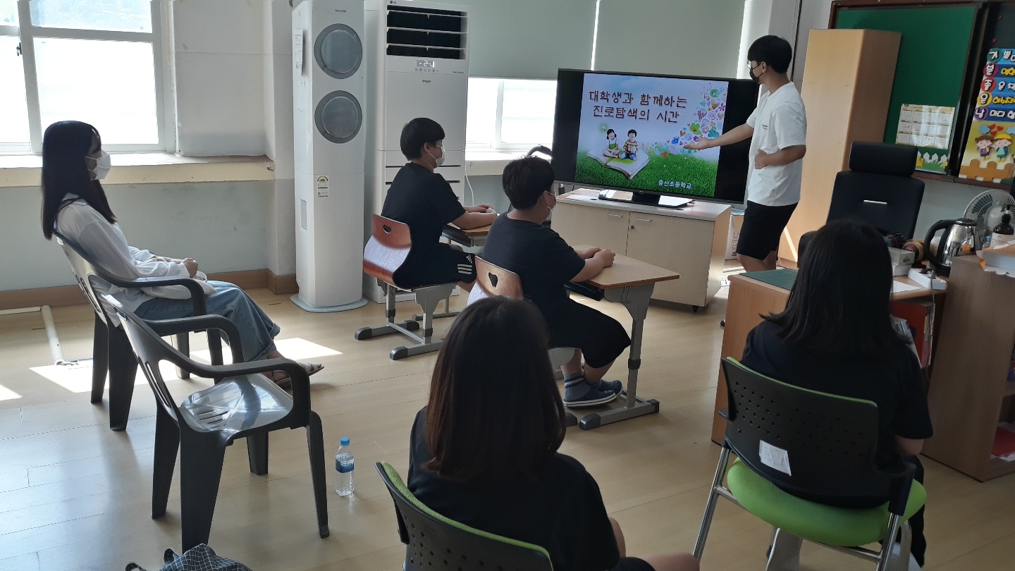 또한, 쉬는 시간과 점심시간을 활용하여 본교 및 학급의 학생 수가 적어 평소 할 수 없었던 역할놀이, 다양한 레크레이션 게임 등을 하며 즐거운 시간을 보낼 수 있었다 6학년 손모 학생은 “처음에는 낯설었지만 정말 즐거웠는데 함께한 시간이 너무 빨리 지나가서 아쉽고 다음에 꼭 다시 만나고 싶어요.”라고 하며 아쉬움을 드러냈다. 다양한 질문을 하는 아이들에게 아직은 청년의 풋풋함이 있지만 재미있고 생생하게 답해주는 대학생들에게서 아이들은 진로탐색의 기회를 얻고 희망을 닮아갈 수 있는 좋은 계기가 되었다.