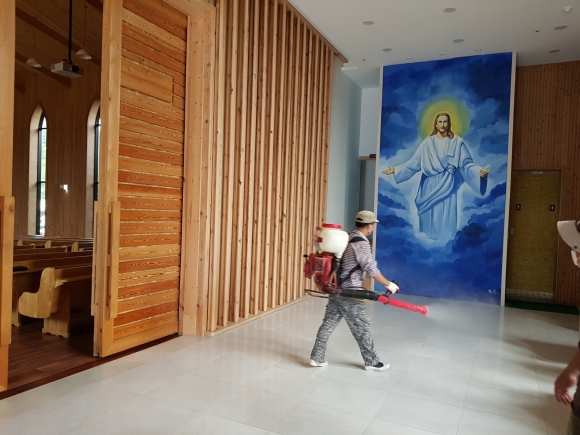 | 감천면 자연보호협의회(회장 이상진) 회원 10여명은 8월 28일 오전 코로나19 바이러스 재확산을 막기 위해 종교시설과 면 청사 등에 방역활동을 실시하였다.