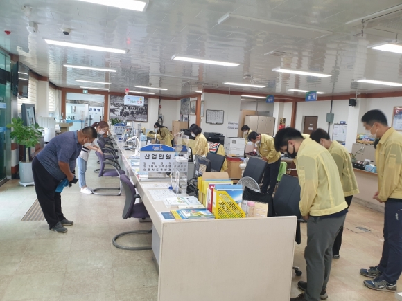 | 아포읍사무소(읍장 이정하) 직원 일동은 9월 1일(화) 아포읍사무소를 찾은 첫 내방객에게 직원 모두가 친절히 인사하기를 실천하였다.