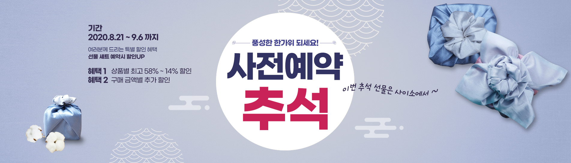 9월 7일부터는 추석 선물세트, 프리미엄 선물, 제수용품으로 구성된 경북 농산물을 최대 50% 할인판매하고, 대량구매 시 추가 10% 할인 행사도 진행하는 등 우수한 상품을 저렴한 가격에 만나볼 수 있다.