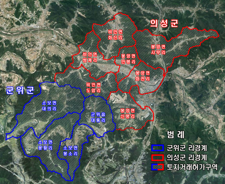 이번 토지거래허가구역 지정은 대구경북 통합신공항이전 등 대규모 개발사업을 앞두고 있어 개발기대심리에 편승한 투기수요가 발생할 우려가 높다는 판단에 따라 투기방지 및 원활한 사업추진을 위한 조치이다. 이에 따라 앞으로 해당지역에 일정규모 이상의 토지를 취득하고자 하는 자는 사전에 토지이용목적 등을 명시해 토지소재지 군수에게 허가를 받아야 하며, 허가 없이 토지거래계약을 체결한 경우 2년 이하의 징역 또는 토지가격의 30% 상당 금액 이하의 벌금형에 처해진다. 또한, 허가를 받은 자는 일정기간 동안 자기거주․자기경영 등 허가받은 목적대로 토지를 이용해야 할 의무가 부과되며, 이를 어길시 매년 취득가액의 10% 범위 내에서 이행강제금이 부과된다.