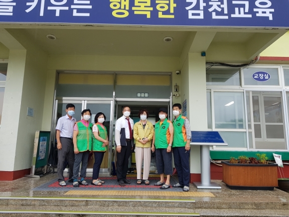 | 감천면 자율방재단(단장 이동상) 회원 7명은 9월 2일 오전 코로나19 바이러스 방역을 위해 감천초등학교를 방문하여 방역활동을 실시하였다.
