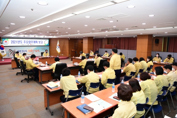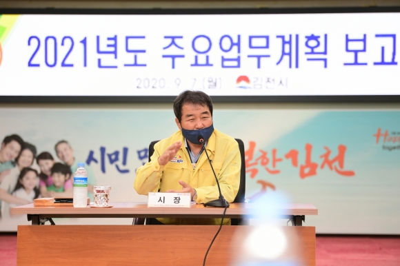 | 김천시(시장 김충섭)는 9월 7일부터 시청 회의실에서 2021년도 주요업무 계획에 대한 부서별 보고회를 개최하고 있다.