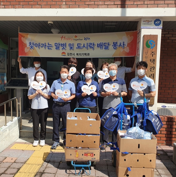 맞춤형 복지 서비스를 실천, 제공하는 「찾아가는 말벗 도시락 배달」은 시민 모두가 행복한 김천을 건설하기 위한 「Happy together 김천」운동의 일환으로 김천부곡사회복지관과 협업하여 월 1회 시행하고 있다.