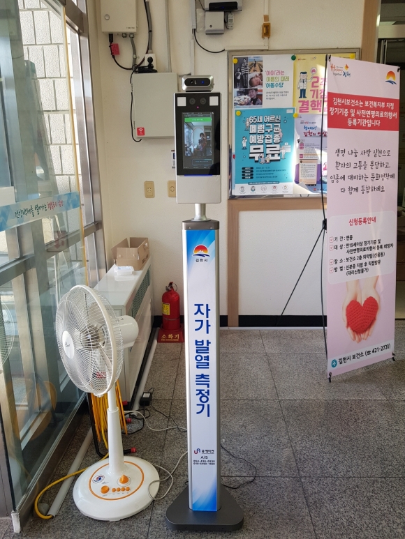 | 김천시(시장 김충섭)는 9월 7일 코로나19 확산방지와 보건소를 방문하는 민원인들의 안전을 위해 사용해 달라며 얼굴인식 체온측정 지능형열화상카메라(200만원 상당)를 유에이썬(김천시 남면 옥산길 38-37)에서 기부하였다고 밝혔다.