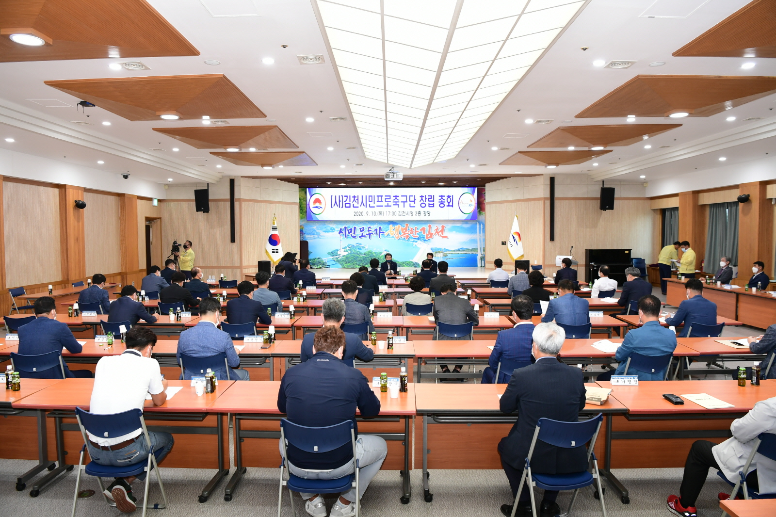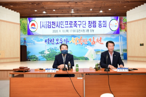 | 김천시에서는 지난 10일(목)에 시청3층 강당에서 김충섭 김천시장이 참석한 가운데 (사)김천시민프로축구단 법인 설립을 위한 발기인 대회 및 창립총회를 개최하였다.