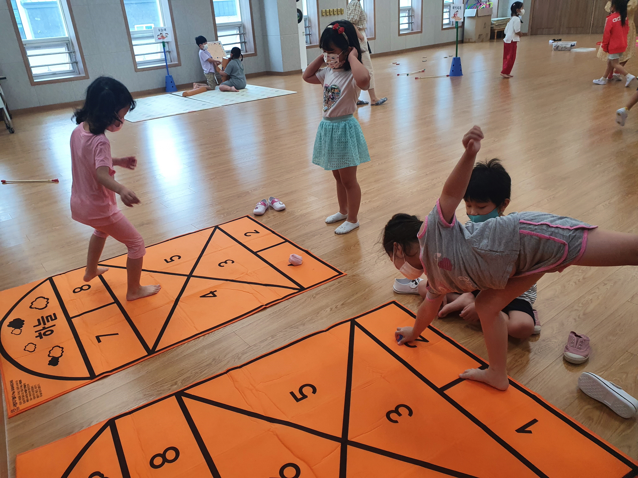 유아들이 익히 알고 있는 놀이인 윷놀이, 투호 던지기, 제기차기, 팽이 돌리기부터 다소 생소할 수 있는 비석치기, 사방치기, 고무신 던지기까지 다양한 우리나라 전통놀이의 종류와 놀이 방법을 알아보고 신명나게 놀이를 즐겨보았다. 그리고 유아들에게는 우리 고유의 놀이문화 체험을 통해 평소 즐겨하지 못했던 전통놀이에 대한 즐거움을 맛보는 좋은 기회가 되었다.