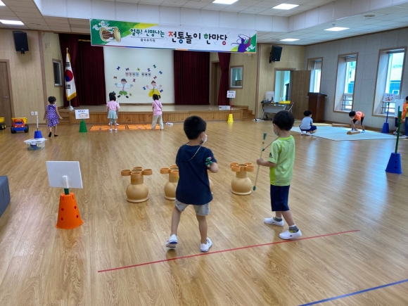 ‘전통놀이 한마당’은 코로나19를 예방하고 거리두기 및 유아들의 안전을 위해 연령 및 반별로 시차를 두고 진행하였다.