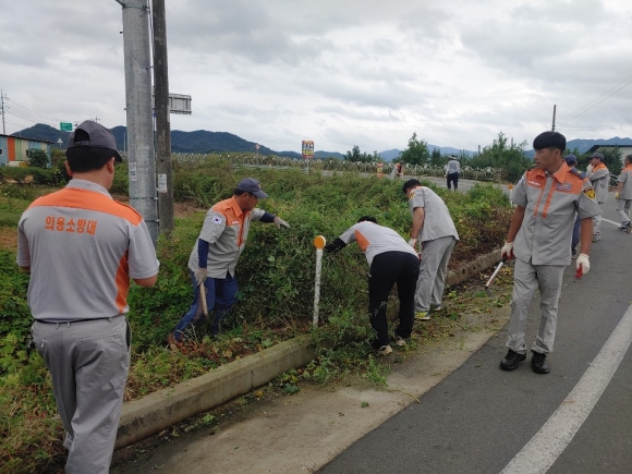 감문면 의용소방대는 도로 경관을 개선하고 운전자 시야 저해로 인한 교통사고 발생을 예방하고자 금회 풀베기 활동을 추진하였으며, 풀베기 작업 후 발생한 잔해 및 주변에 적치된 쓰레기도 모두 수거했다.