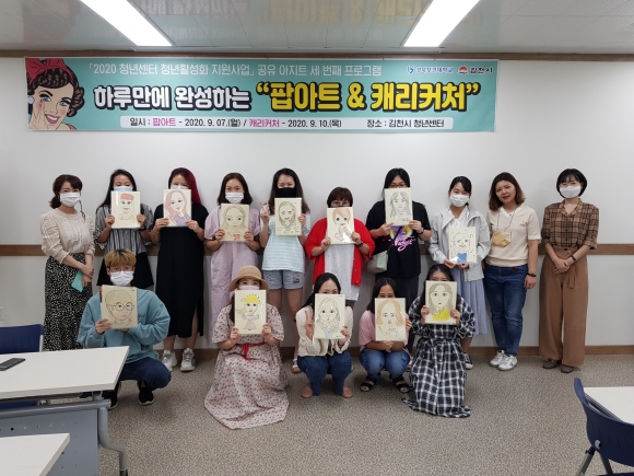 김천시 청년센터는 “팝아트 캐리커쳐 프로그램은 같은 주제로 그림을 그리지만 완성본은 각자 색채나 표현기법이 본인만의 개성이 드러나 자기표현과 자이이해에 도움을 프로그램이며, 짧은 시간에 다양한 색채와 자신의 개성을 표현할 수 있어 자기수용과 더불어 완성해가는 과정에서 성취감을 느끼도록 개설하였다.”고 전했다.