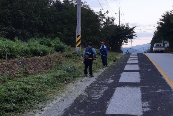 | 부항면 청년회(회장 김영복)는 9월 15일 12명의 청년회 회원들과 함께 안간리의 연도변 풀베기 작업을 실시했다.