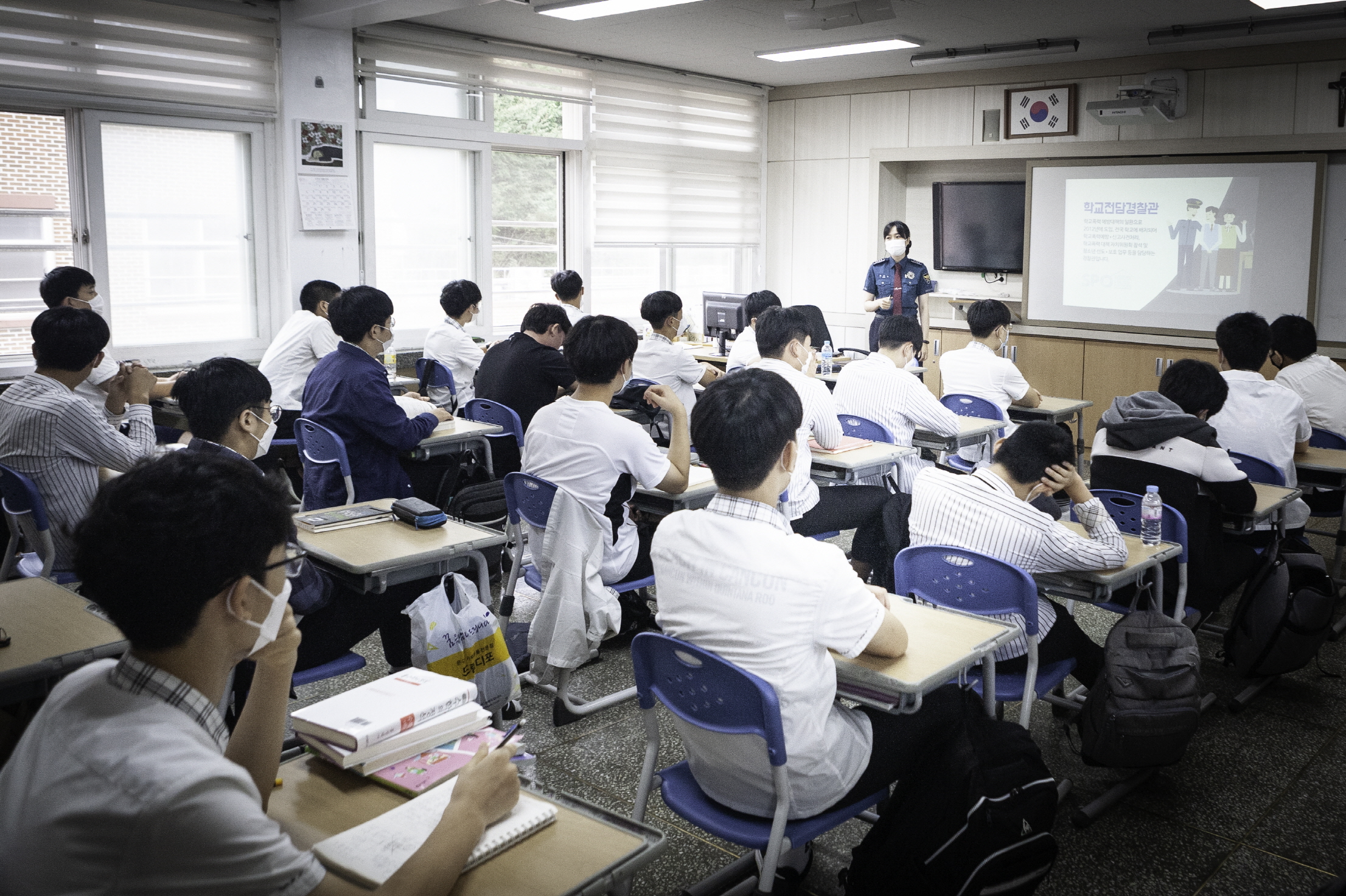 학교전담경찰관이 직접 각 교실에 들어가서 학교폭력예방 교육을 실시하였다. 특히, 코로나 19 상황에 많이 발생하는 사이버 폭력, 명예훼손, 모욕, 따돌림 및 정보통신망을 이용한 폭력에 대한 교육을 중점적으로 시행하여 학생들의 경각심을 고취시켰다.