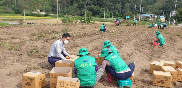 또한 이날 새마을 부녀회원들은 불우이웃돕기 성금 조성과 수익금 마련을 위한 일환으로 송죽리에 소재한 휴경지에 정성으로 키워 놓은 고구마 수확 활동도 동시에 전개하였다.