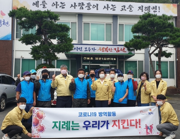 | 김천시 지례면 지역사회보장협의체(위원장 이상경)에서는 추석연휴를 대비하여 9월 18일(금), 25개 경로당 주변 및 관공서, 버스 정류장 등 다중이용장소에서 코로나19 방역을 실시하였다.