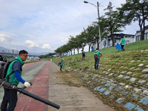 이번 국토대청결운동은 ‘추석 명절 대비 일제 방역의 날’에 맞춰 함께 진행되었는데, 풀베기와 쓰레기 줍기 작업 후에 교동 연화지와 강변조각공원 일대의 방역도 진행하였다.