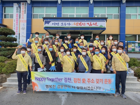감문면은 관내 16개 기업과 법인을 대상으로 담당직원을 편성하고, 전입독려활동을 추진하고 있다. 관외주소자에 대한 실거주지 확인 및 전입독려는 물론 코로나-19로 인한 기업운영의 현안사항 등을 파악하고 있으며, 아울러 남부내륙철도 조기착공, 쿠팡(주)과 업무협약 체결 등과 같은 김천시 주요시정 추진현황을 홍보하며 김천愛주소갖기 운동에 동참해 줄 것을 당부하고 있다.