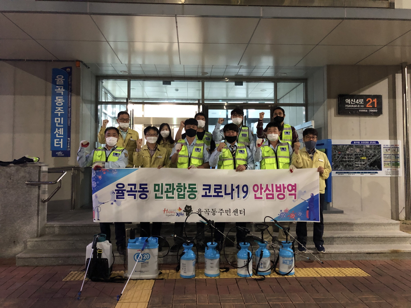 이번 방역은 추석을 앞두고 공원 시설물, 공중화장실, 어린이놀이터, 버스승강장 등 주민들이 다수 이용하는 다중이용장소를 중심으로 소독을 했다. 대원들은 단체 활동복을 갖춰입고 소독장비와 소독용 분무기를 이용해 방역활동을 펼치며, ‘사회적 거리두기’와 ‘마스크 쓰기’ 등 개인위생 수칙 안내 캠페인도 함께 진행했다.