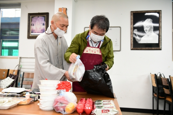 공양방은 김천불교사암연합회에서 운영하며 코로나 19감염 재확산 방지 및 사회적거리두기 2단계 격상에 적극 대처하기 위해 현장에서 배부하던 대체식을 중단하고 저소득 취약계층 어르신 가정(기초수급자, 차상위계층) 78세대에 직접 방문하여 도시락을 전달하고 있다. 또한 기존에 거동 불편으로 가사활동 및 식사준비가 어려운 독거노인 66세대에 도시락 배달도 함께 하고 있다.