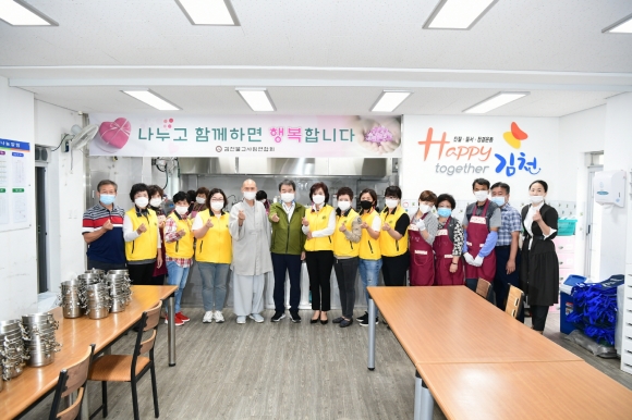 | 김충섭 김천시장은 9월 24일 무료급식소 공양방(남산동)을 찾아 도시락 포장 봉사활동을 했다. 추석명절을 맞이하여 공양방 봉사자들과 함께 저소득 취약계층 어르신들 가정에 보낼 도시락을 포장 봉사를 했다. 평소에도 꾸준히 봉사활동을 해오고 있는 봉사자와 공양방 관계자들을 격려하고 소외된 어르신들에게 나눠 줄 도시락과 부식(떡,빵,음료등)을 포장하며 시간과 수고를 아끼지 않으며 헌신해주셔서 감사하다고 말했다.