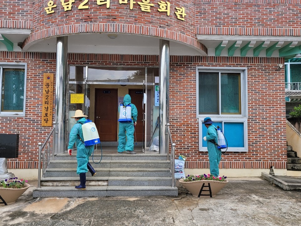 이날 방역은 마을회관 및 경로당, 버스 정류장, 오봉저수지 등 사람들의 왕래가 잦은 곳을 중심으로 진행되었다. 특히, 사람들의 손이 많이 닿는 곳을 꼼꼼히 소독하며 방역에 적극 앞장섰다.