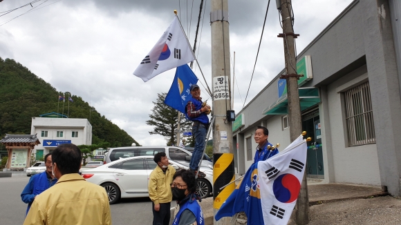 | 증산면 바르게살기운동위원회(위원장 손태윤)에서는 25일(금) 유성1리 국도30호선 연도변에서 바르게살기 가로기 설치 행사를 가졌다.