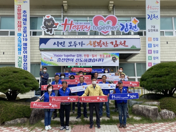 김명환 증산면장은 “오늘 행사에 참석하여 바르게살기운동의 활기를 불어넣어 주신 손태윤 위원장님을 비롯한 각 위원님들께 감사드린다. 우리면에서도 「Happy together 김천」 운동과 관련하여 바르게살기운동의 성공적인 추진을 위한 행정적 지원을 아끼지 않겠다.”고 말했다.