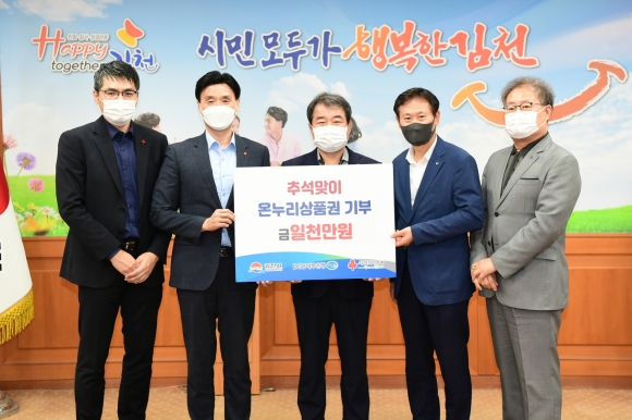 | DGB 대구은행은 지난 25일 추석을 앞두고 김천시에 온누리상품권 1,000만원을 기탁했다. 이번에 기탁된 상품권은 지역 내 어려운 이웃 100가구에 전달된다.