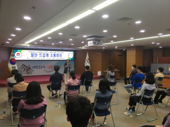 | 김천시(시장 김충섭)는 지난 25일 김천시청 2층 회의실에서 시청 20대 공무원 30명을 대상으로「Happy together 김천」직원 친절 4회차 교육을 실시했다.