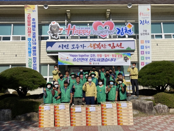 이번 행사는 코로나19로 인해 어수선한 사회 분위기 속에서 소외되는 주민 없이 모두가 행복한 추석명절을 보낼 수 있도록 증산면 새마을지도자회 회원들이 정성스럽게 준비한 것으로 따뜻한 마음을 담아 각 마을별로 전달하였다.