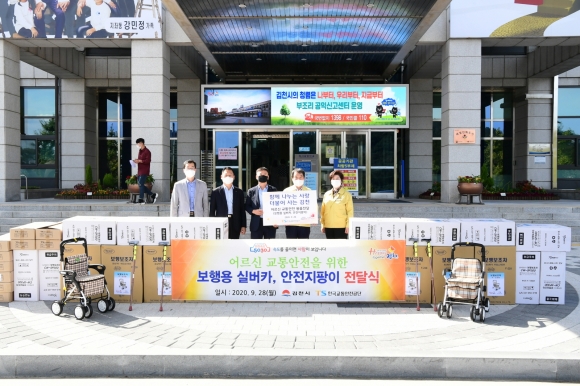 한국교통안전공단, 김천시에 실버카·안전지팡이 전달