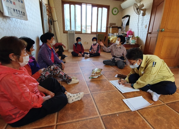 | 조용화 남면장은 추석 명절로 인한 코로나-19의 확산 방지를 위해 실시되었던 경로당 일시 폐쇄가 종료됨에 따라 10월 6일 관내 경로당 23개소 방문하여 경로당 개방 여부 및 방역실태를 점검하고 어르신들의 안부를 살폈다.