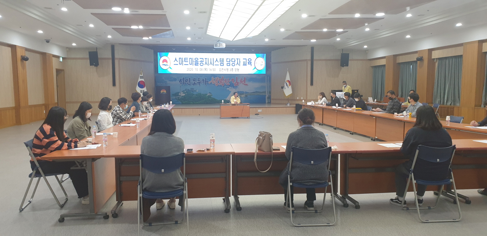 | 김천시(시장 김충섭)에서는 10.8(목) 시청 3층 강당에서‘스마트 마을공지시스템’담당자 교육을 실시했다. 이날 교육에는 읍면동 담당자가 참석했으며, 스마트 마을공지시스템 도입 취지, 김천시 방송시설 현황, 시스템 사용법 등을 교육하고 등록율을 높이기 위한 다양한 업무 노하우를 공유 했다.
