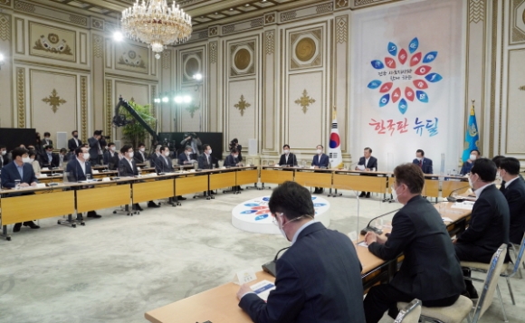 - 청와대 제2차 한국판 뉴딜 전략회의에서‘경북형뉴딜 3+1 종합계획’소개 - - 신공항, 세계수준의 디지털+그린기술 집약... 한국판뉴딜 대표모델로 추진 - - 한국판뉴딜 성공위해... 행정통합 필요성 강조, 정부 차원의 관심․지원 건의 -