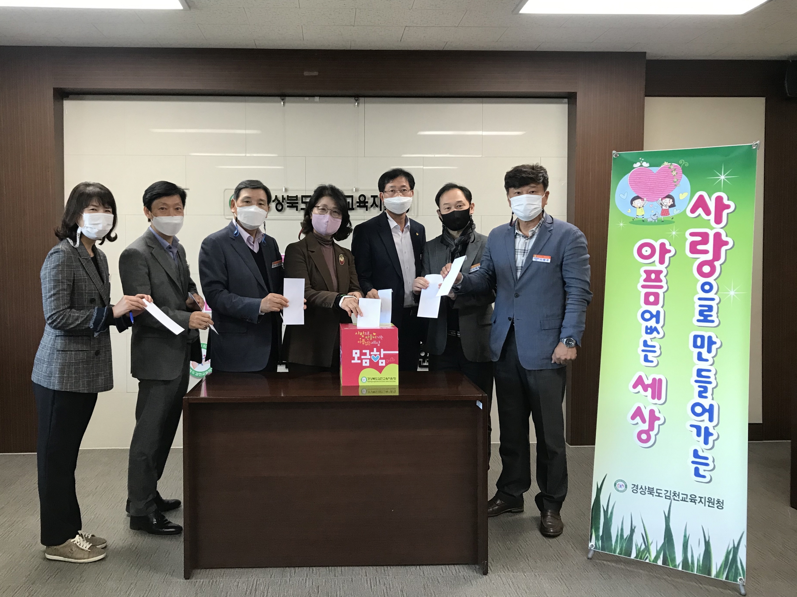 | 경상북도김천교육지원청(교육장 마숙자)은 10월 15일 전 직원이 참여하는 2020 난치병 학생 돕기 성금 모금 행사를 개최하였다.
