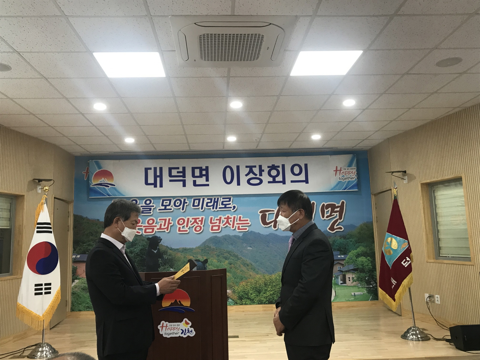 이원용 대덕면장은 “대덕면에 남다른 애향심으로 주민 화합과 복리 증진에 헌신하는 면민들이 많은 만큼, 우리 대덕면 직원들도 항상「Happy Together 김천」의 친절, 질서, 청결 정신을 실천하겠다”고 했다.