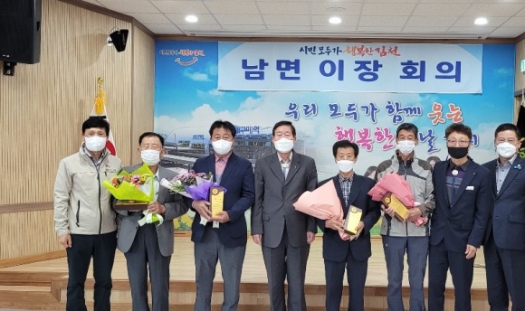 | 남면 이장회의협의회(회장 임순태)에서는 10월 16일(금) 상반기 정기회의를 개최하였으며 이날은 지역발전을 위해 헌신하시고 고생하신 분들에게 상패를 수여하였다.
