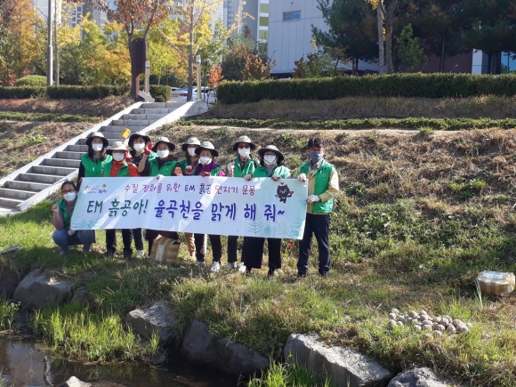 율곡동 새마을부녀회, EM 흙공 던지기 행사 가져