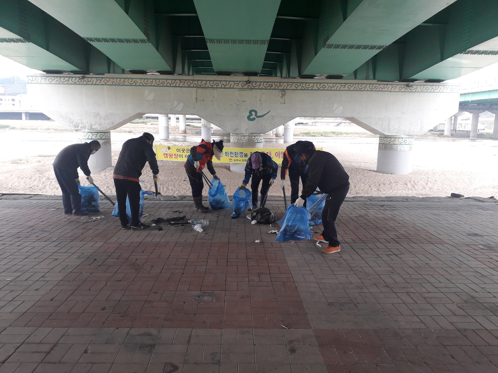 이날 행해진 청결작업은 감천변 일대 곳곳에 숨어있던 각종 쓰레기와 오물 그리고 상류에서부터 떠내려온 잔재물들을 대대적으로 걷어내고 정리하는 것이었다. 이번 작업은 민관 합동으로 청결한 김천을 만들자는 Happy together의 정신에 걸맞게 집중적으로 감천변 일대의 더러운 이물질들을 치우고 정리하는 것이었다.