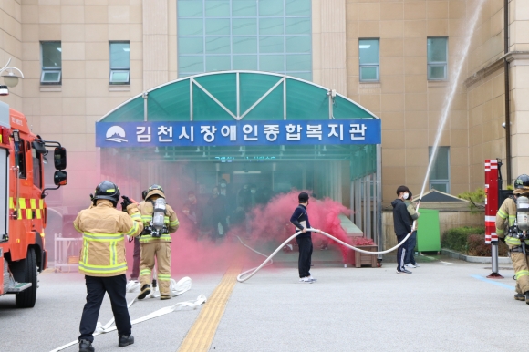 | 김천시장애인종합복지관(관장 박선하)은 21일 이용고객과 직원 대상으로 자체 소방훈련을 실시했다.