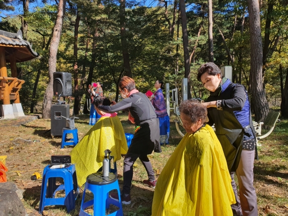 이날 행사는 코로나 확산방지를 위해 예방수칙을 준수하며 야외에서 진행되었으며, 생활체조, 우리민요, 부채춤, 아랑고고장구, 하모니카 등 다양한 공연으로 구성하여 동네 어르신들에게 즐거움을 선사하였다. 또한, 미용 봉사도 함께 이루어졌다.