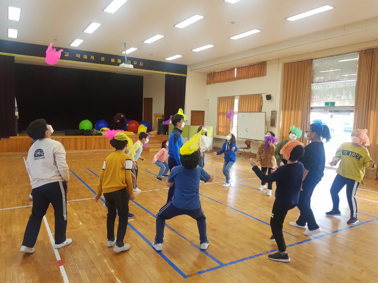 학생들은‘쉬폰 천’을 활용한 신체 놀이, ‘너와 나는 하나 피자배달’놀이, ‘로프 술래잡기’, ‘킨 볼 활동’, ‘탁구 릴레이 카드 모으기’, ‘파라슈트 헹가래’등 다양한 놀이 활동을 통해 서로를 배려하며 함께 즐기는 방법을 익히게 되었다. 또한 마지막 활동으로 가장 기억에 남는 놀이에 대해 이야기를 나누고, 서로 함께 어울리기 위한 다양한 규칙 만들기를 해보며 나와 네가 ‘우리’가 되는 과정을 직접 체험하였다.