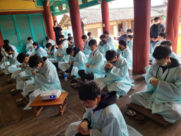 | 성의중학교(교장 안중기)는 21일 1학년 대상으로 경주 서악서원에서 “신화랑 풍류와 선비 체험” 진로체험학습을 실시하였다. 학교는 그동안 코로나-19로 인한 대면·비대면 수업 활동을 병행하면서 힘든 일상에서 벗어나 학생들의 자발적인 학습에 참여하는 기회를 제공하였다.